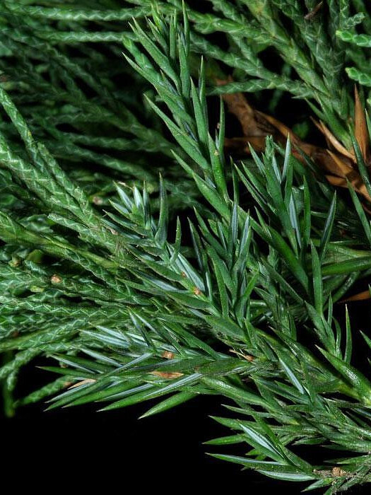 Крупный хвойный кустарник с вертикальным ростом, сизоватого оттенка. Хвоя нижних и молодых побегов игловидная, верхних – чешуйчатая.