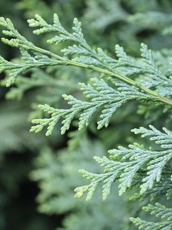 | Хвоя | Хвоя чешуйчатая, зеленая, густая, плотно прилегает к ветвям. Молодая поросль мраморно-белая или белая, к зиме зеленеет. |
