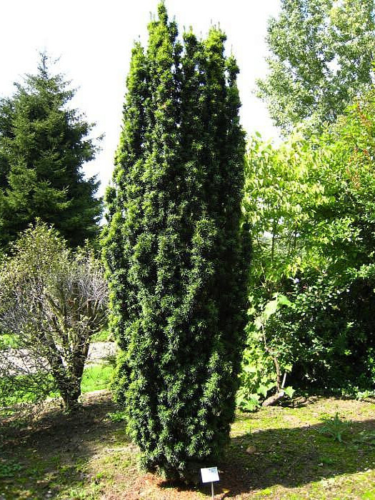 Хвойный кустарник узко-колонновидной формы. Высота 3-5 м, диаметр кроны до 1 м. Растет медленно. Хвоя игольчатая мягкая, темно-зеленая, расположена спирально.