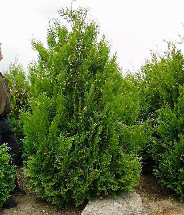 Мощное хвойное дерево с густой пирамидальной кроной. Побеги широкие, ярко-зеленые с желтыми кончиками. Долговечна, живет до 500 лет.