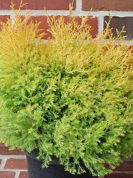 Туя западная Рейнголд (Rheingold) это хвойник с густой кроной, у молодых растений округлая, у взрослых коническая. Хорошо зимует и не особо требовательный к почве сорт.