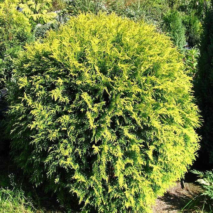 Карликовая форма. Разновидность Туи Woodwardii с желтой окраской кроны, рост более замедленный. В культуре с 1963 г.