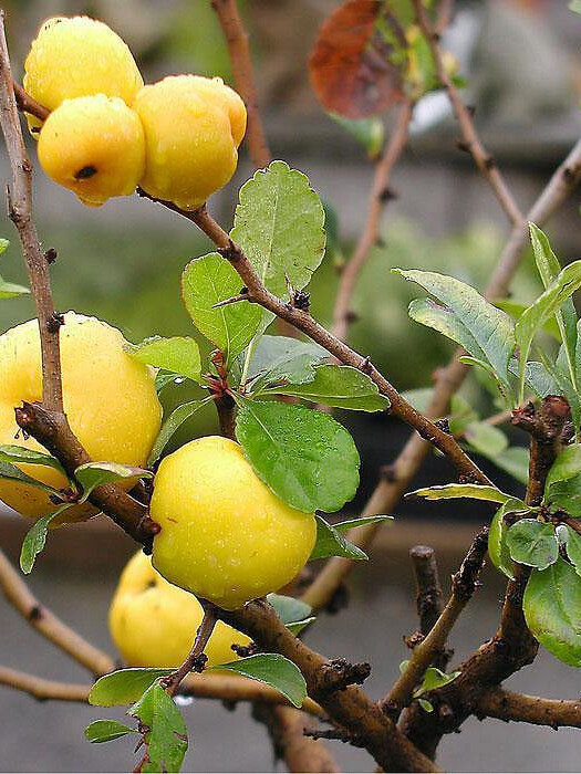 | Уход и защита | Ежегодный уход за японской айвой заключается в удалении слабых и сухих, поломанных снегом и старых веток. Для обильного урожая необходимо внесение подкормок и удобрений (три раза за сезон). |