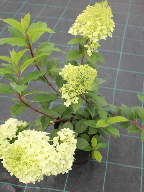 Интересен сорт гортензии Диамантино (Diamantino) прежде всего плотностью куста и обилием цветков. Куст имеет вертикальную форму средней высоты, до 1,4 м. Побеги прямые, прочные, вишневого цвета, к осени становятся красновато-коричневого. Соцветия средние: 20-25 см, метелки плотные и густые, состоящие из стерильных цветков. Сначала цветения желто-зеленые, затем белеют, и к осени немного розовеют. Зимостойкость хорошая.