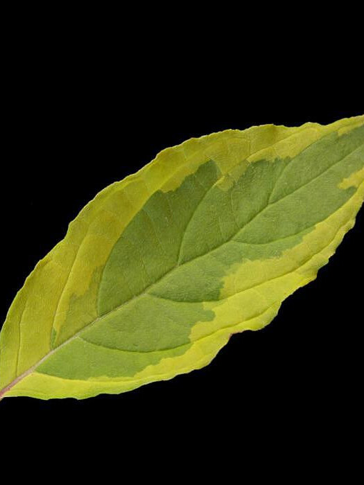 | Листва | Зелёные листья с широким жёлтым слегка розоватым окаймлением |