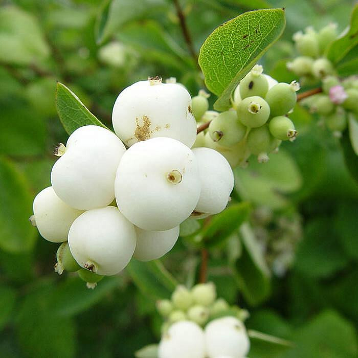 | Плоды | Плоды белые, круглые, в геометрически правильных гроздьях, долго сохраняются на кусте. |