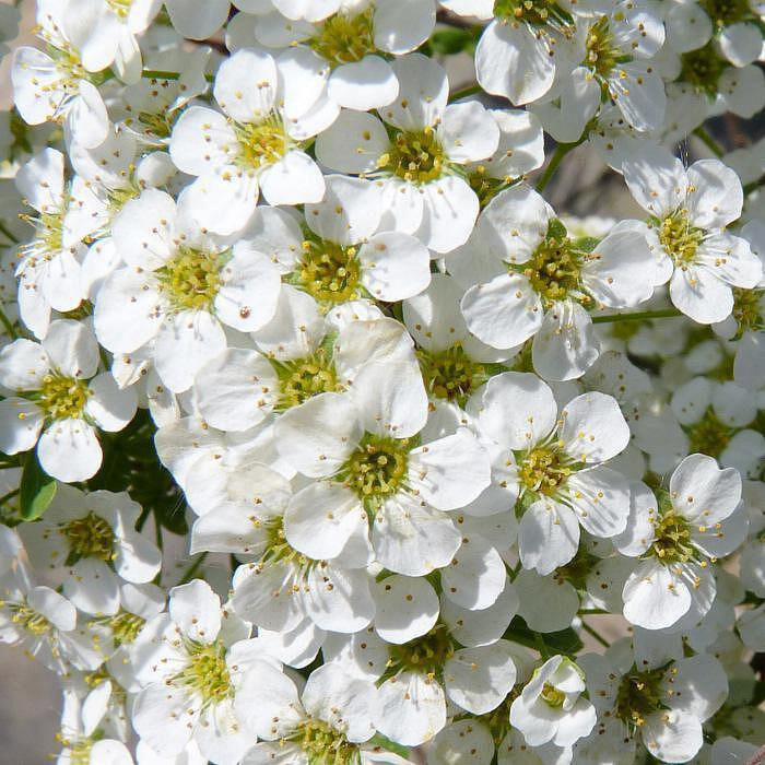| Цветение | Цветет в мае-июне. Ярко-белые цветки, до 1 см в диаметре, собраны в многочисленные зонтичные соцветия, покрывающие ветви. |