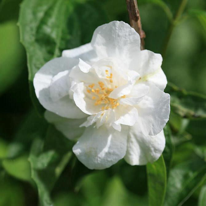 Чубушник Полар Стар. Кустарник высотой 2 м. Крона вертикальная, овальная. Очень крупные немахровые и махровые цветы на одном растении. Цветет поздней весной и ранним летом.