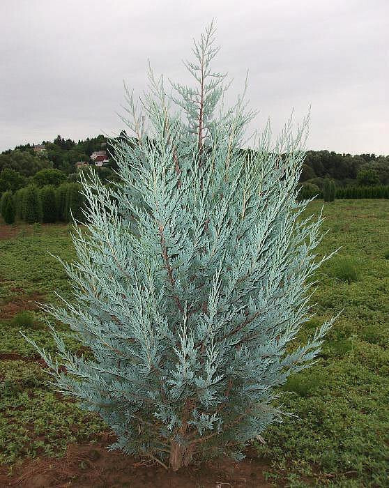 Можжевельник скальный Мунглоу – широкий конический или пирамидальный кустарник до 3-5 м высотой, шириной 1-1,5 м. Хвоя серебристо-голубая, не колючая.